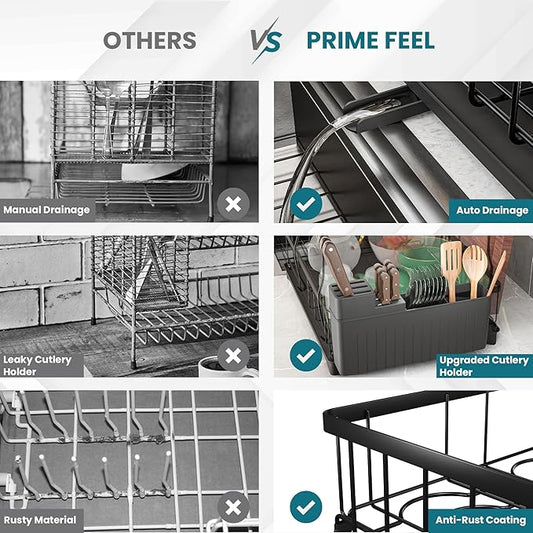 2 Tier Dish Drainer Rack with Drainage Spout,Detachable Dish Drainer Rack,Draining Board Rack with Utensil Holder
