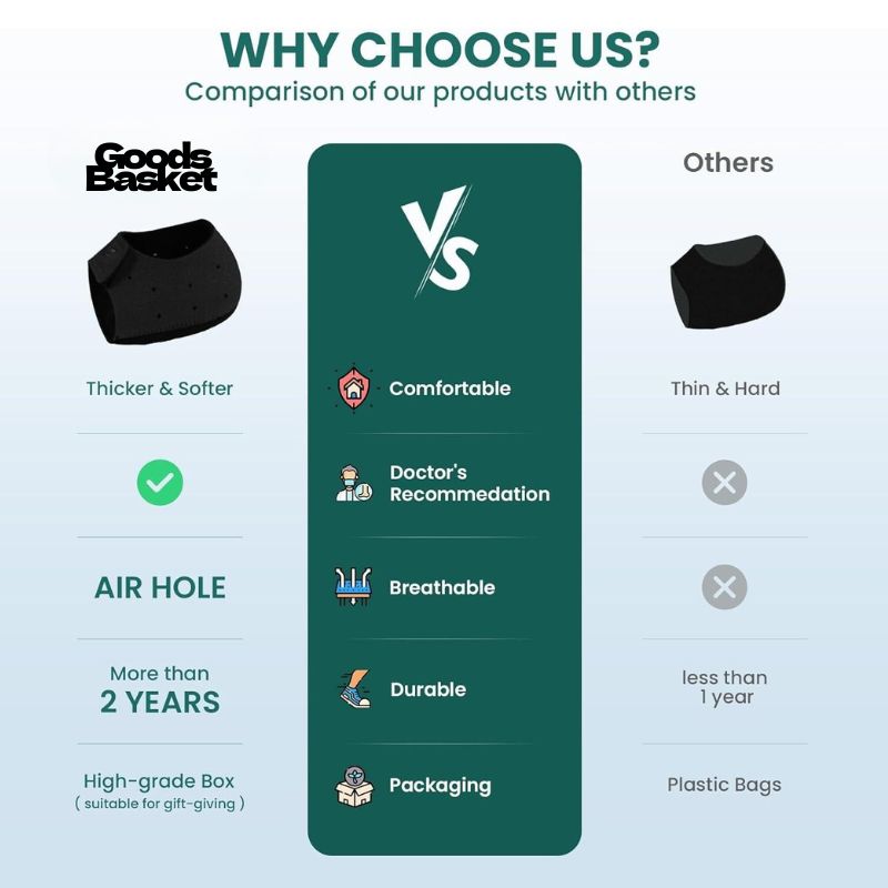 Supports cracked or swollen heels while reducing tension in your ankles and lower back. Walk comfortably again without pills or padding.