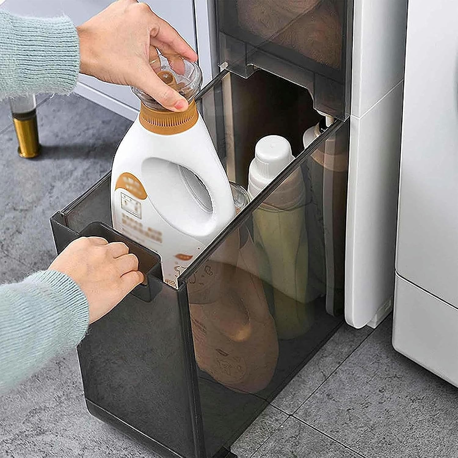 Maximize your bathroom storage with this slim and stylish narrow storage cabinet. Perfect for small spaces, it features a multifunctional design to keep toilet paper, bathroom accessories, and more neatly organized. Made from waterproof and durable PP+ABS material, this cabinet is easy to clean and move, offering a practical and elegant solution for any bathroom.