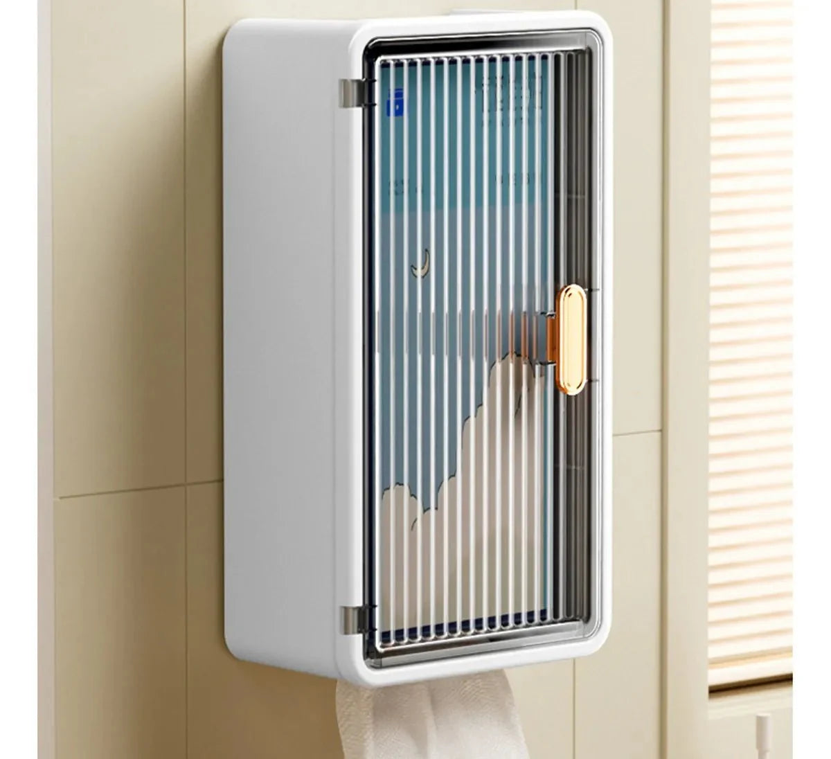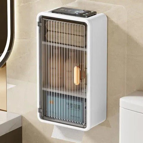 The transparent cover lets you monitor paper towel levels at a glance, while the spacious compartment accommodates various tissue sizes and other essentials.